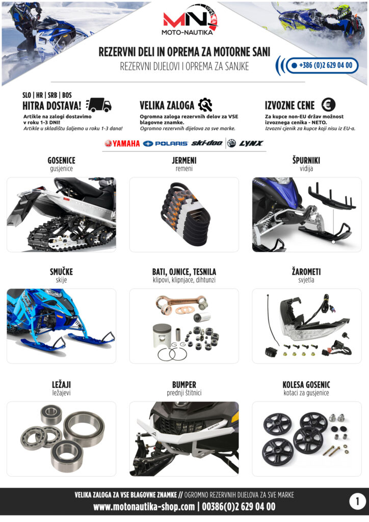 Navdušenci nad motornimi sanmi pozor! V Moto-Nautiki smo pripravljeni, da poskrbimo za vse vaše potrebe – od rezervnih delov in dodatne opreme za motorne sani do strokovnega, zanesljivega servisa. Ne glede na to, ali potrebujete hitro menjavo potrošnega materiala, rešitev okvare ali nadgradnjo za boljšo zmogljivost in varnejšo vožnjo, pri nas dobite vse na enem mestu.