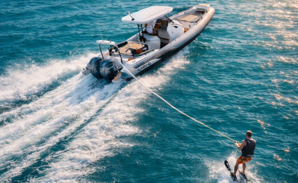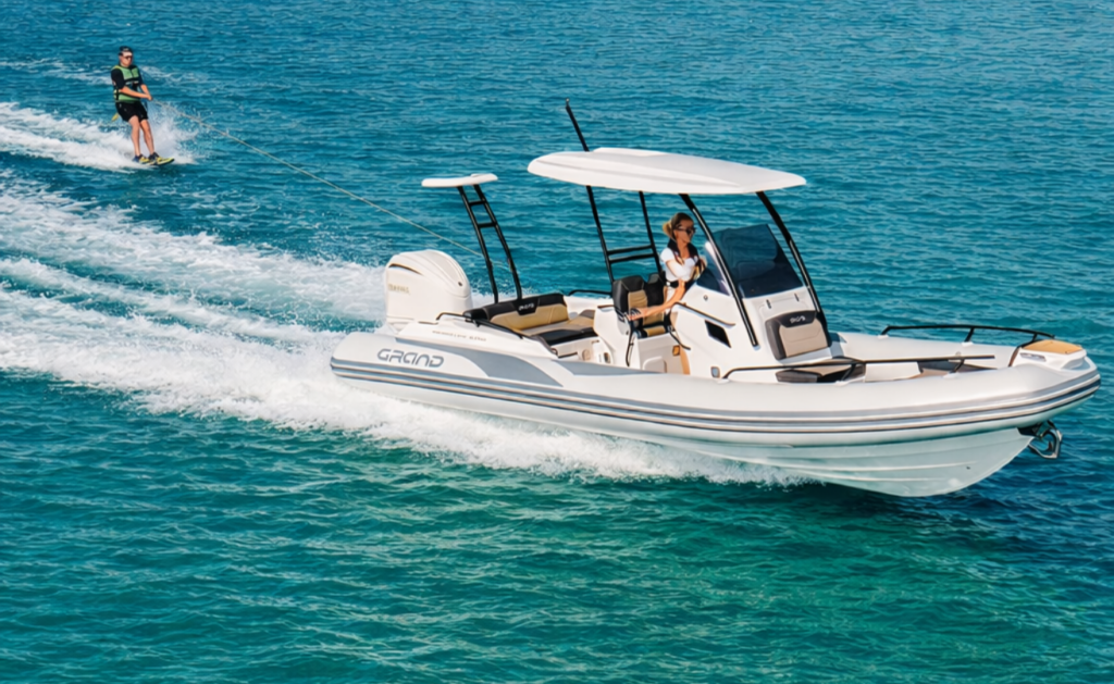 Grand G750HGLF je brez dvoma eden najbolj vsestranskih modelov za vodne športe. Opremljen je z ojačanim roll barom in kljuko za vleko smučarja, kar pomeni, da je pripravljen na akcijo takoj, ko zapustite marino. Velik zadnji prtljažni prostor omogoča enostavno shranjevanje smuči, wakeboarda ali druge opreme, medtem ko kombinacija dolžine (7,5 m) in motorja do 250 KM poskrbi za dovolj moči in stabilnosti tudi pri bolj dinamični vožnji.
