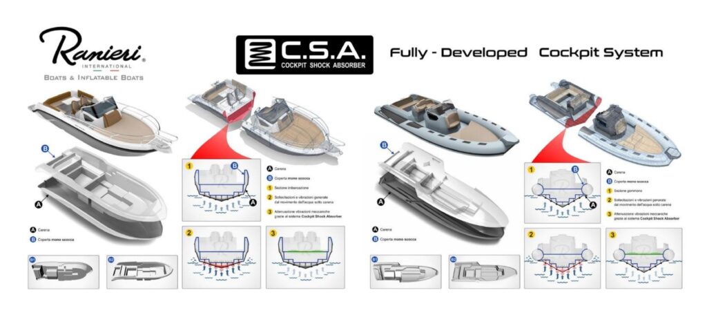 Pri montaži uporabljajo Cockpit Shock Absorber System, inovativno tehniko, ki zmanjšuje vibracije in hrup ter izboljšuje udobje med plovbo. Vsi sistemi – električni, hidravlični in gorivni – so zasnovani in izdelani v podjetju, kar zagotavlja najvišjo varnost in skladnost z mednarodnimi standardi.