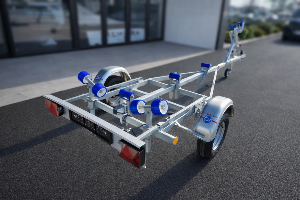 Prikolica BA 550R je vaša zanesljiva rešitev za varen in preprost prevoz manjših plovil. S težo le 113 kg in kompaktno zasnovo je izjemno enostavna za rokovanje – tudi če z njo nimate veliko izkušenj. Robustna konstrukcija zagotavlja stabilnost na cesti, hkrati pa je dovolj lahka, da ne obremenjuje vozila. Odlična izbira za manjše gumenjake ali čolne do približno 4,5 m dolžine.