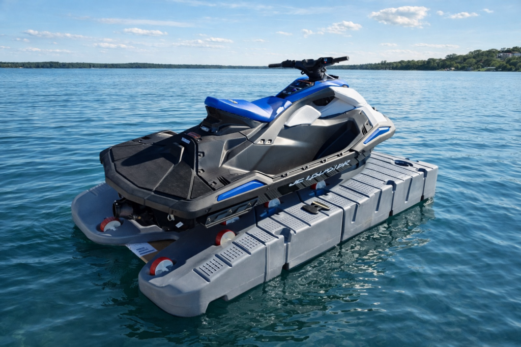 JetPort Flexi jetski dock grey je idealna rešitev za varno, stabilno in preprosto pristajanje vašega vodnega skuterja. Ta modularni plavajoči dok je zasnovan za vse, ki želijo zanesljivo in dolgotrajno rešitev za privez skuterja – bodisi v zasebni marini ali profesionalnem pristanišču. Zaradi svoje funkcionalnosti in kakovostne izdelave je primeren tako za zahtevne navtike kot tudi za profesionalne uporabnike.